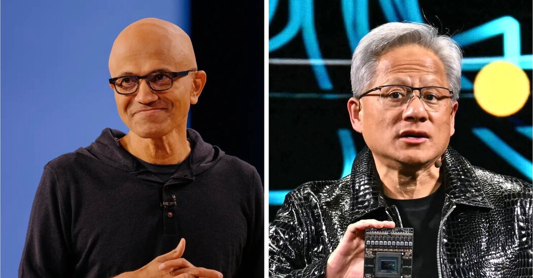 Neither executive joined his big tech contemporaries who stood ramrod behind Mr. Trump at his inauguration. Instead, the two were on entirely different continents: Mr. Nadella was traveling to the World Economic Forum in Davos, Switzerland, while Mr. Huang was wrapping up a visit to see suppliers and employees in Taiwan and China.
