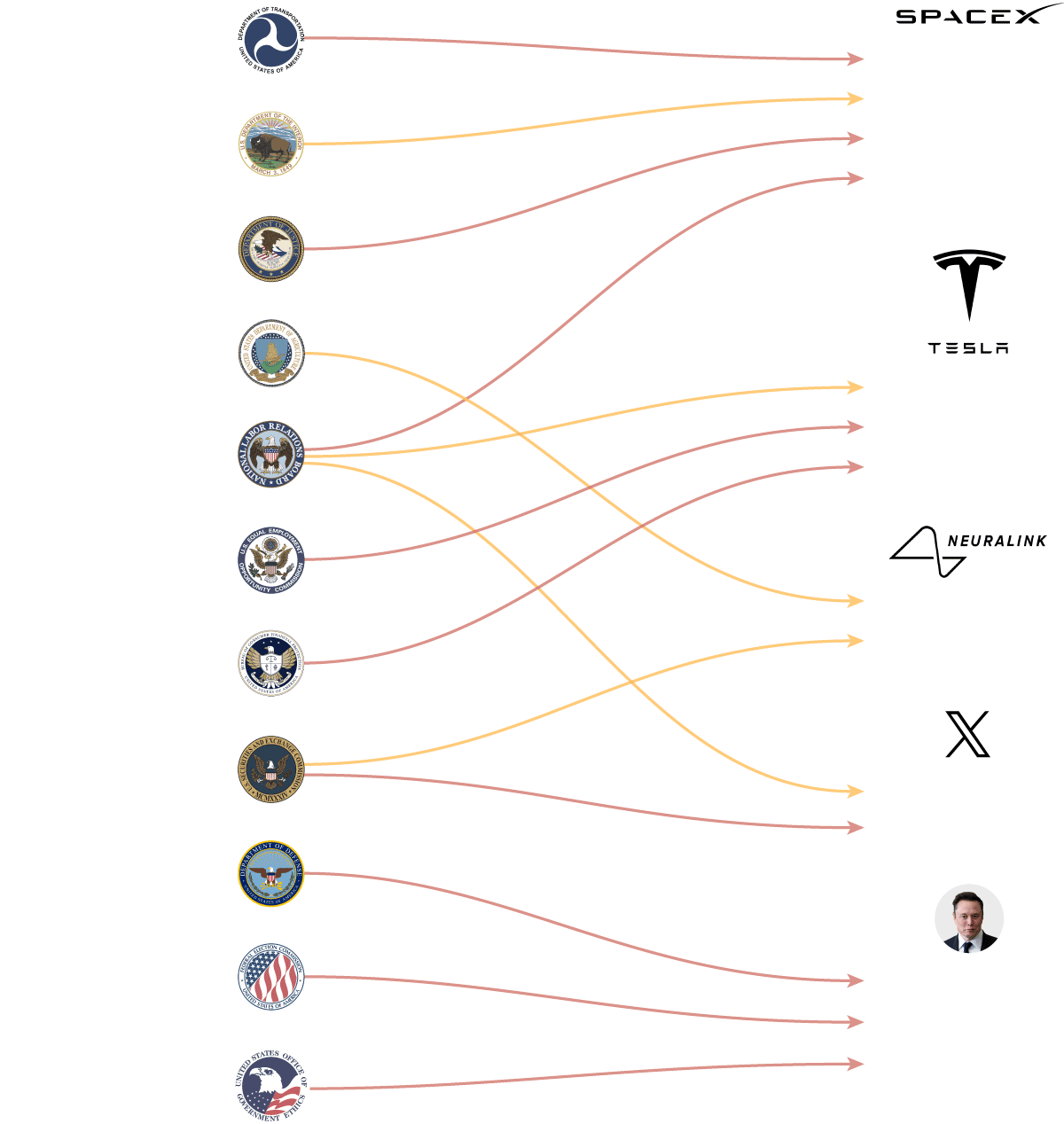 At least 11 federal agencies that have been affected by those moves have more than 32 continuing investigations, pending complaints or enforcement actions into Mr. Musk’s six companies, according to a review by The New York Times.