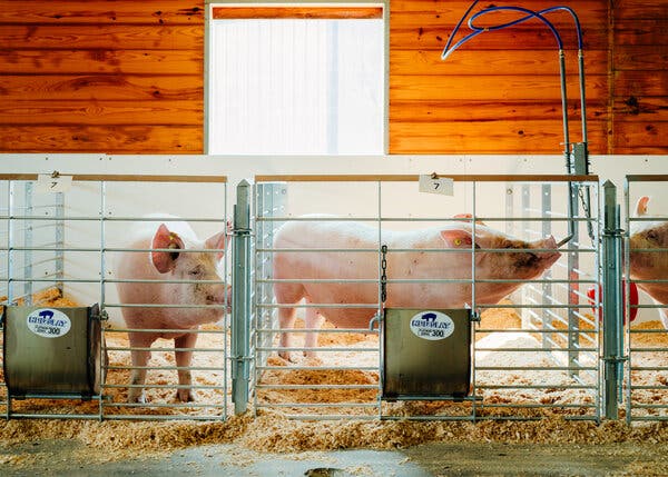 On a 300-acre farm in an undisclosed location in rural Wisconsin, surrounded by fields dotted with big red barns and bordered by wild blue chicory and goldenrod, live some of the most pampered pigs in the world.