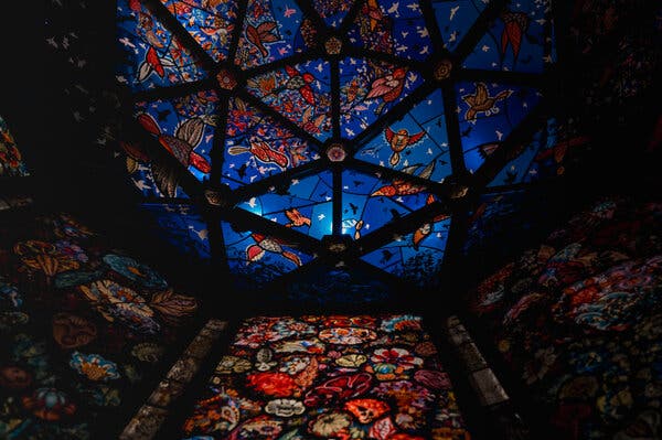 “I am not a religious person, but it is hard not to feel overcome by a sense of awe and wonder when you enter the dome,” said Laura Turner Igoe, chief curator at the James A. Michener Art Museum in Doylestown, Pa. The eight-foot-tall work, and nine glass panels and two related drawings exploring humanity’s relationship with the cosmos, are now on view there in “Judith Schaechter: Super/Natural,” which opened April 12 and runs through Sept. 14.