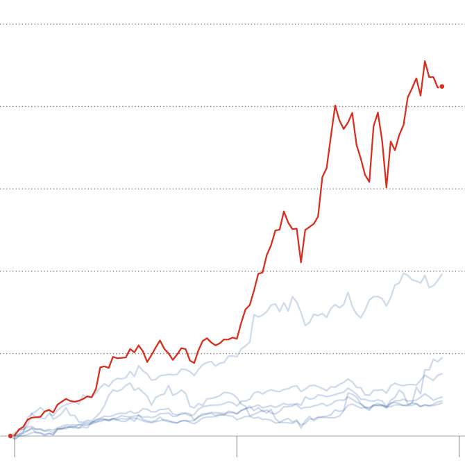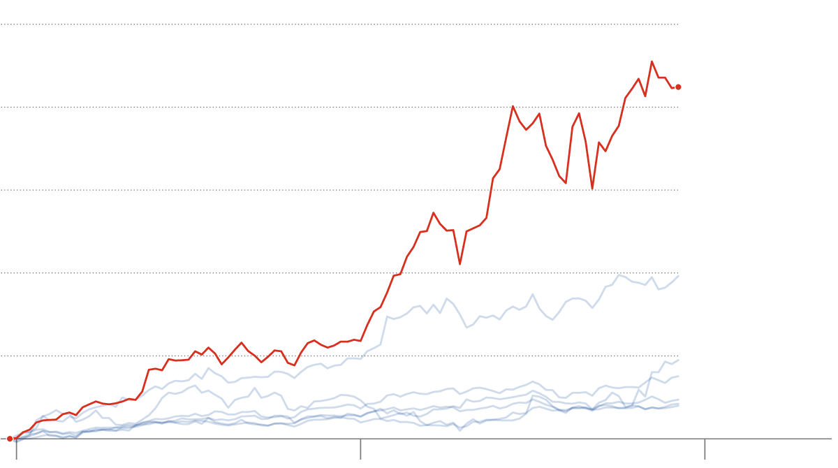 Nvidia’s shares have been among the stock market’s best performers, soaring over 800 percent since 2022.