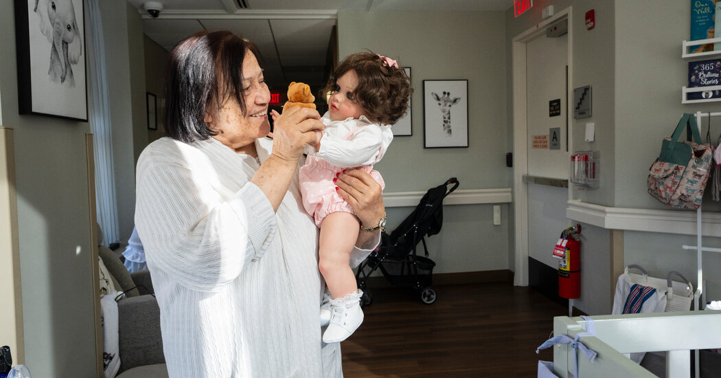 She was the oldest girl of eight children, so she handled lots of family responsibilities, she told Catherine Dolan, the facility’s director of life enrichment, who was asking questions to help the memories flow. Later in life, Ms. Rosa worked in a bank and a store; the stories emerged as she cuddled the doll.