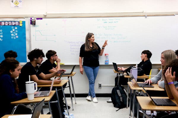 One morning in April, Tracy Lowd, a social studies teacher in Miami, tried a new approach to making government policy come alive for her high school students. She used artificial intelligence chatbots to role-play American presidents.