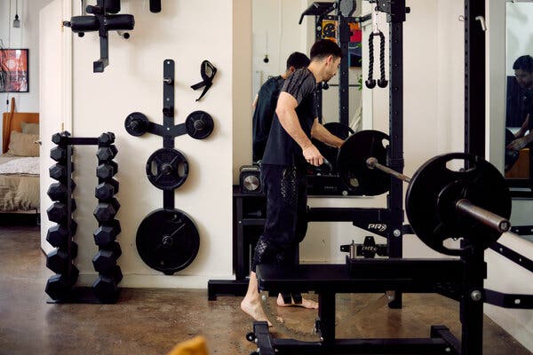 In a closet near his makeshift gym, he turned an oversize meat freezer, which had no lock, into a cold plunge tub. “I didn’t even think to tell my landlord about all this,” said Mr. Tarabbia, 36, the founder of a software company. “I was like, well, I’ll just ask for forgiveness.” (He moved in 2022 and has been adding gym amenities ever since.)