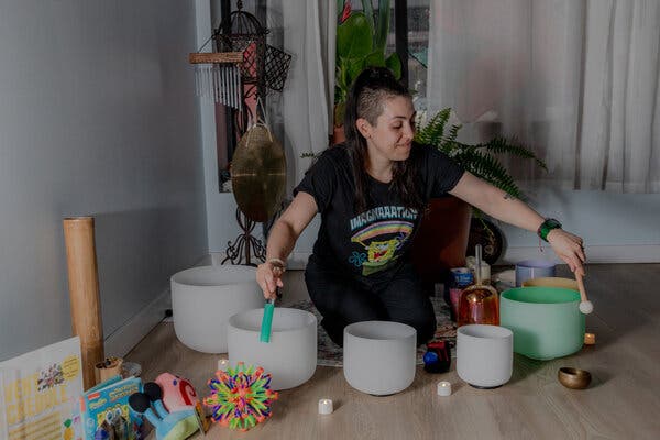 On a recent Saturday morning at Artful Souls & Wellness, a street-level yoga studio in Williamsburg, Brooklyn, a group of 10 gathered in a circle surrounded by cushions, plants, instruments and essential oils. Rain fell outside while calming music played; the mood was serene.